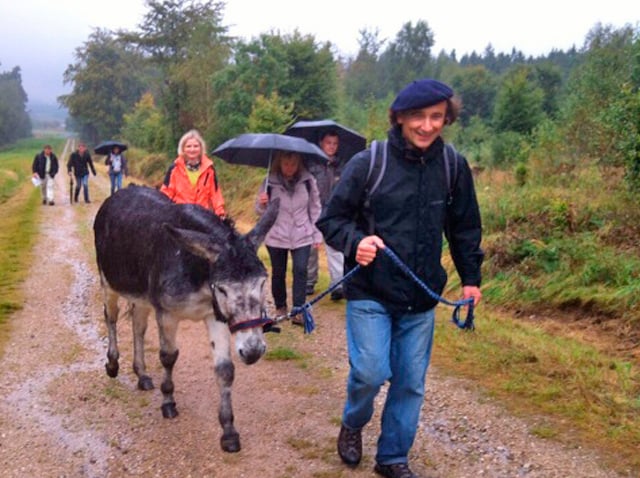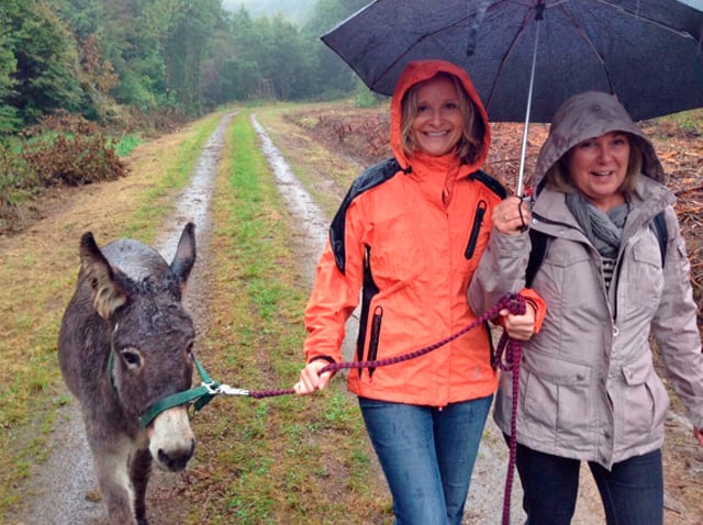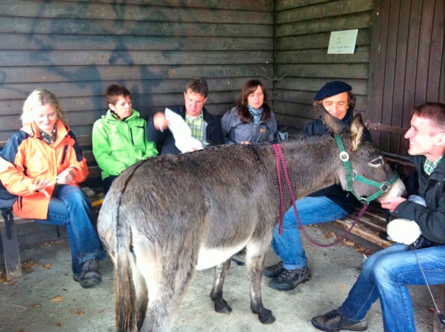 Hallo liebe Petra, vielen lieben Dank für den schönen Tag, den wir - ganz besonders ich:-) - mit Deinen Eseln verbringen konnten. Wir hatten trotz des anhaltenden Regens viel Spaß. Wie man siehst, ist Käthe bei unserem Picknick in der Schutzhütte nicht von unserer Seite gewichen, während Jupp lieber im strömenden Regen gegrast hat - typisch Mädchen halt :-) Nachmittags sind wir noch ins Bauern-Café - alle waren vom Kuchen begeistert und nach heißem Kaffee bzw. Kakao waren wir alle wieder trocken und aufgewärmt. Also: Herzlichen Dank noch mal und weiterhin alles Gute. Liebe Grüße aus dem Hunsrück, Christina & Anhang.