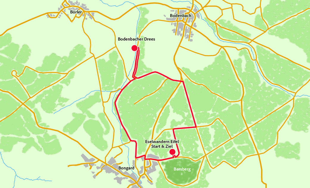 Diese Tour hat ihr Start und Ziel am Alten Forsthaus in Bongard. Bei diesem Wanderrundweg geht es zum Drees nach Bodenbach. Hier hat man die Möglichkeit zu einer idyllische Picknickpause. Der